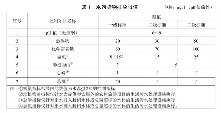 本標(biāo)準(zhǔn)適用于處理規(guī)模小于 500 m3 /d 的農(nóng)村生活污水處理設(shè)施水污染物排放管理。500m3 /d 及以上規(guī)模的農(nóng)村生活污水處理設(shè)施水污染物排放參照 GB 18918 執(zhí)行。