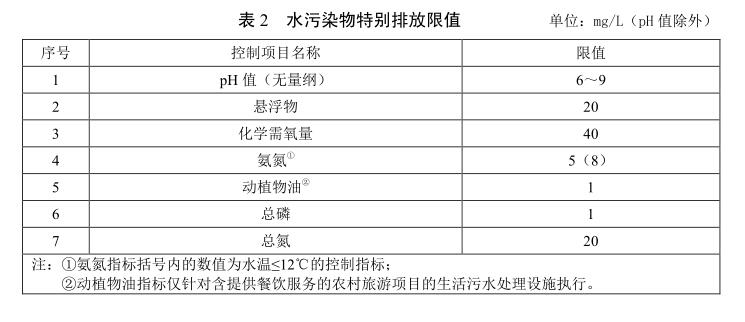 5.3 根據(jù)水生態(tài)環(huán)境管理的需要,位于水環(huán)境功能重要、水環(huán)境容量較小或者未達(dá)到水環(huán)境質(zhì)量目標(biāo)的地區(qū)的農(nóng)村生活污水處理設(shè)施,執(zhí)行表 2 中的水污染物特別排放限值。執(zhí)行水污染物特別排放限值的農(nóng)村生活污水處理設(shè)施的規(guī)模、地域范圍及時(shí)間由各地級(jí)以上市人民政府規(guī)定。