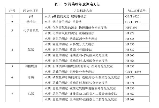 6.4 水污染物排放濃度的測定采用表3所列方法標(biāo)準(zhǔn)。本標(biāo)準(zhǔn)實(shí)施后國家發(fā)布新的污染物監(jiān)測方法標(biāo)準(zhǔn),同樣適用于本標(biāo)準(zhǔn)相應(yīng)污染物的測定。